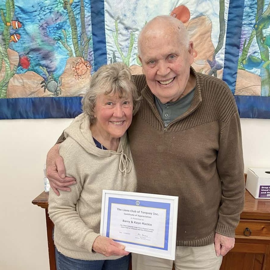 Tradie, Footballer, Teacher, Coach, Mentor and just a good bloke. Lion Barry Mackie is leaving us to move to Mt Eliza with his wife, Kaye. It was in Echuca he joined Lions in 1989. They decided to move to Torquay in 2010 and he joined the Lions Club of Torquay. Barry has always been at the forefront of activity in Torquay, with BBQ’s, marshalling, pub raffle, clean ups etc. He has held several positions including President in 2013. His service has been recognised through the awarding of the prestigious J Richardson award in 2018 and Melvin Jones in 2024.