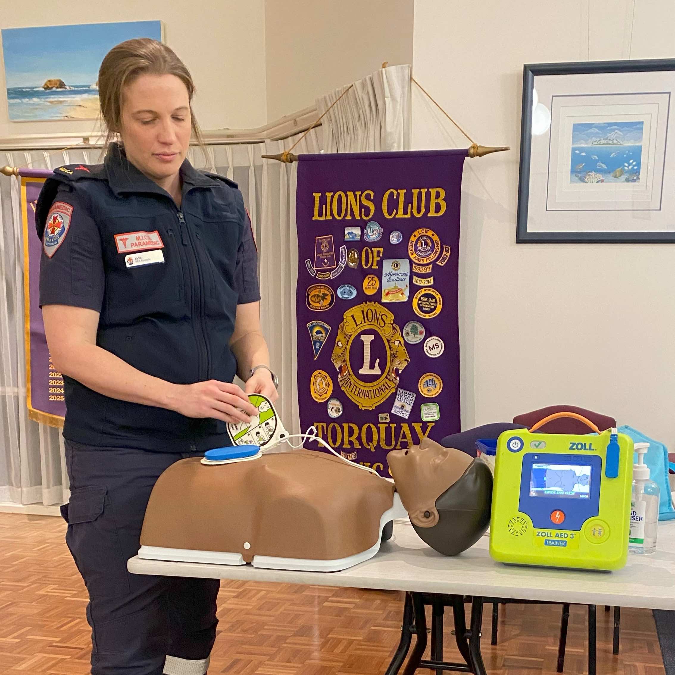 At our September Dinner Meeting, we were joined by Kylie, who is a MICA (Mobile Intensive Care Ambulance) Paramedic, Kylie spoke about her work and fielded questions from the audience. With 15 years of experience as a paramedic, the last 7 years as a MICA paramedic, she has worked at Stawell and Geelong and is highly accomplished. Kylie demonstrated the current correct CPR technique and then the use of a defibrillator, which guides rescuers through the process of performing CPR and can deliver a potentially lifesaving shock to the heart when needed.