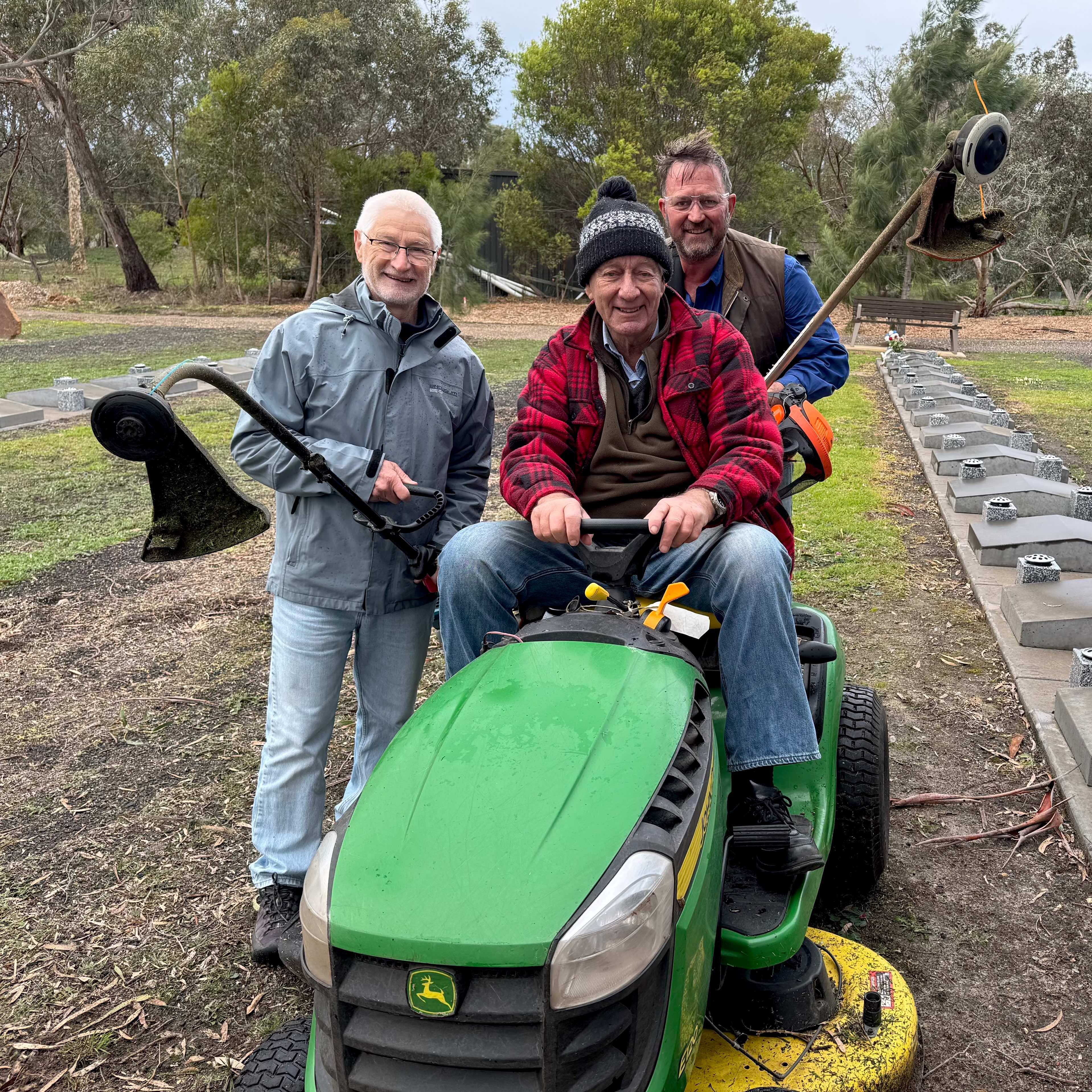 Torquay Lions held another working bee at the Bellbrae Cemetery on Tuesday 8th July. The club regularly helps maintain the Cemetery grounds by mowing, weeding and raking the gumtree litter. The club is paid by the cemetery trust for its efforts, with the funds going into the Administration Account. This helps subsidise the costs of running the club.
