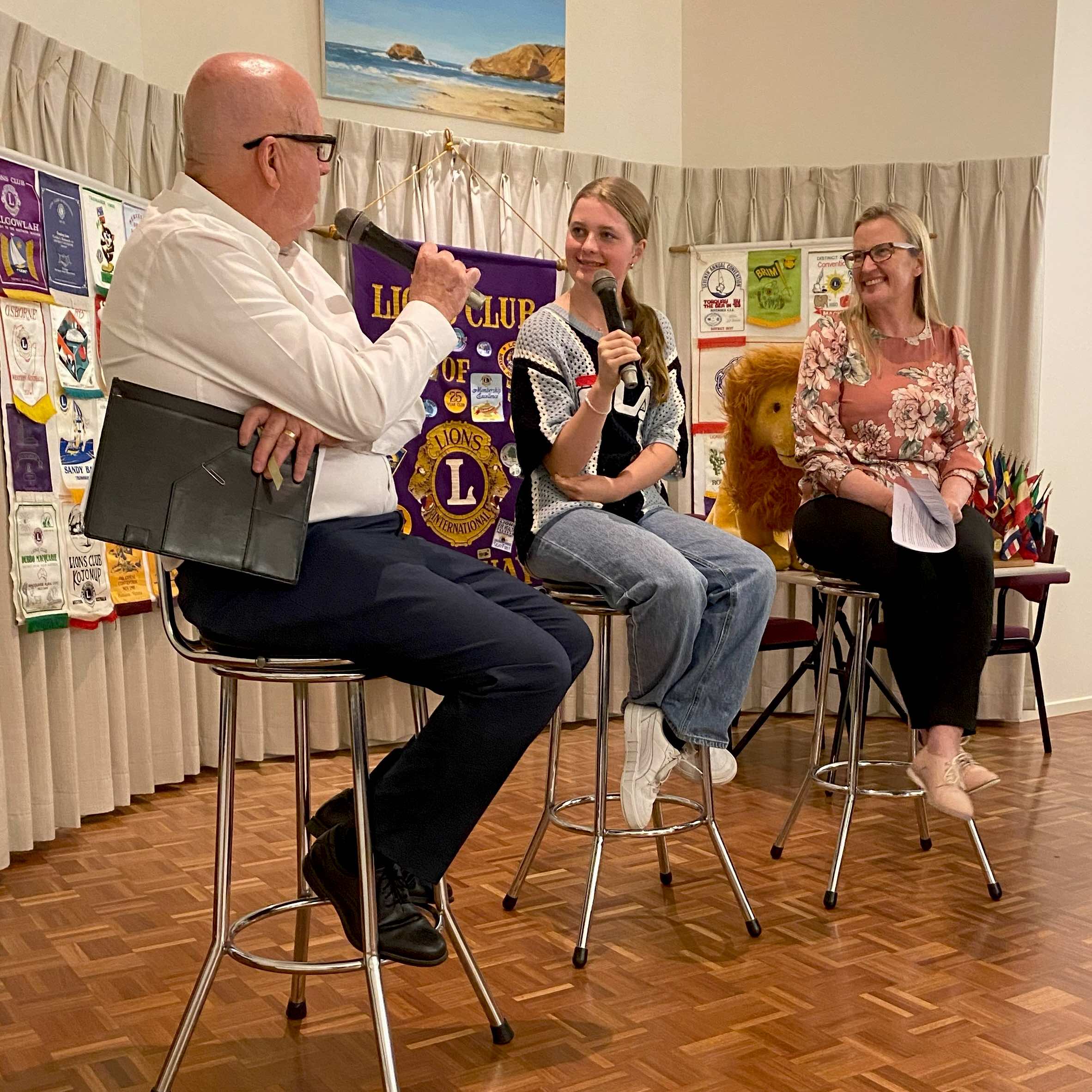 Lion Brian Keane facilitated a question-and-answer interview of 16-year-old Belle and her mother. Their story stunned the attentive audience.