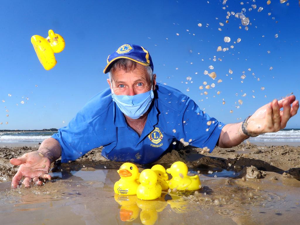 During the COVID restrictions in 2020, 2021 and 2022, with our usual methods of funds raising curtailed, we ran 3 Duck Races. The public bought (adopted) ducks at $5 each and then heats and a final were held with the winners receiving donated prizes.