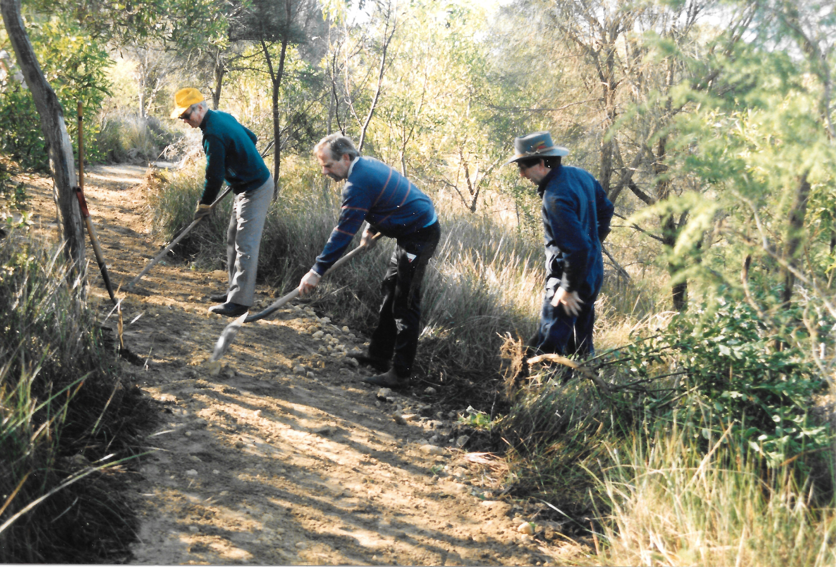 The track, stretching from the Elephant Walk along the foreshore to Deep Creek then up to Fischer Street and onto the Surf Coast Highway, was built by Torquay Lions, aided by Torquay Scouts. Gravel and equipment was provided by the Torquay Foreshore Committee.