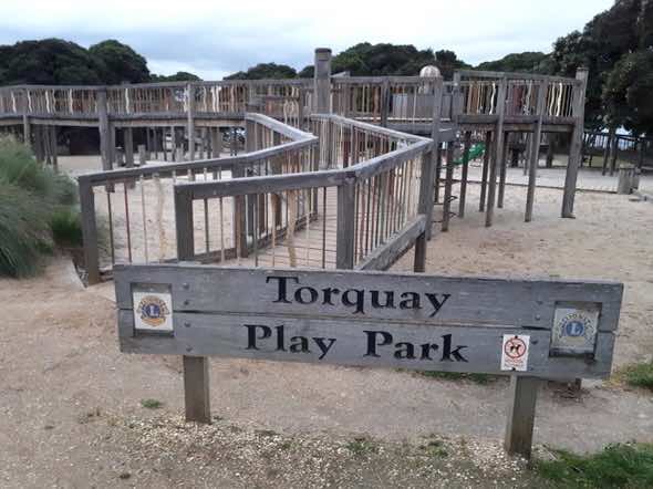 Elephant Walk Playground was constructed from 1985 to 1989. Torquay Lions Club members donated over 2000 man hours to the playground, including the BBQ shelter, and rotunda rest area, assisted by the Torquay Public Reserves, and the City of South Barwon.